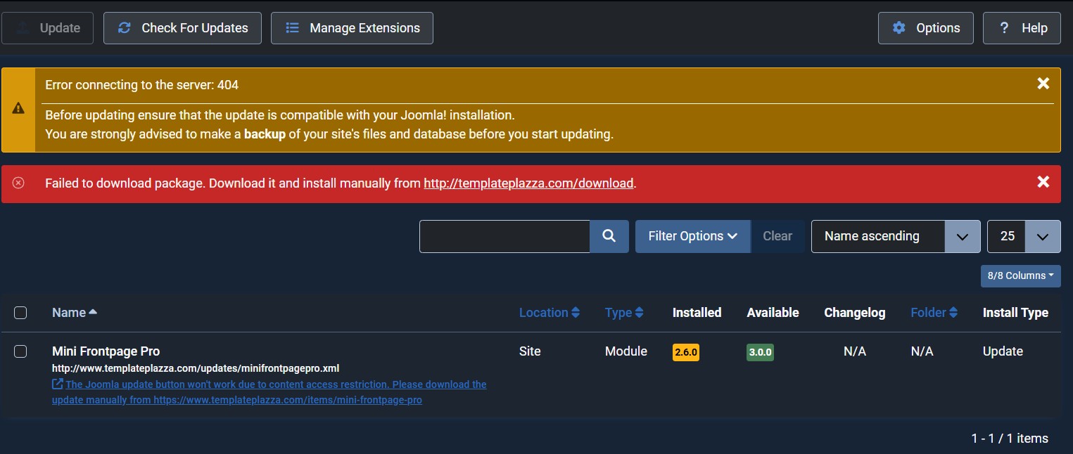 Can't Update Mini Frontpage Pro 2.6 to 3.0 automaticly