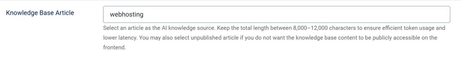 Thank you. The selection now works. But I bought this to combine multiple articles as a knowledge base as presented. There is a description to warn users to now use too many articles and you even count the chars. So I'd be thankful if you would add a multiple option.